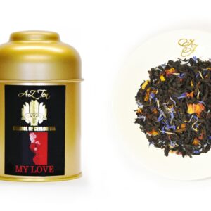 Sweet and sour black tea flavored with rose, hibiscus, cocoa, and chocolate rum accented with the sweet aroma of sugar cane.